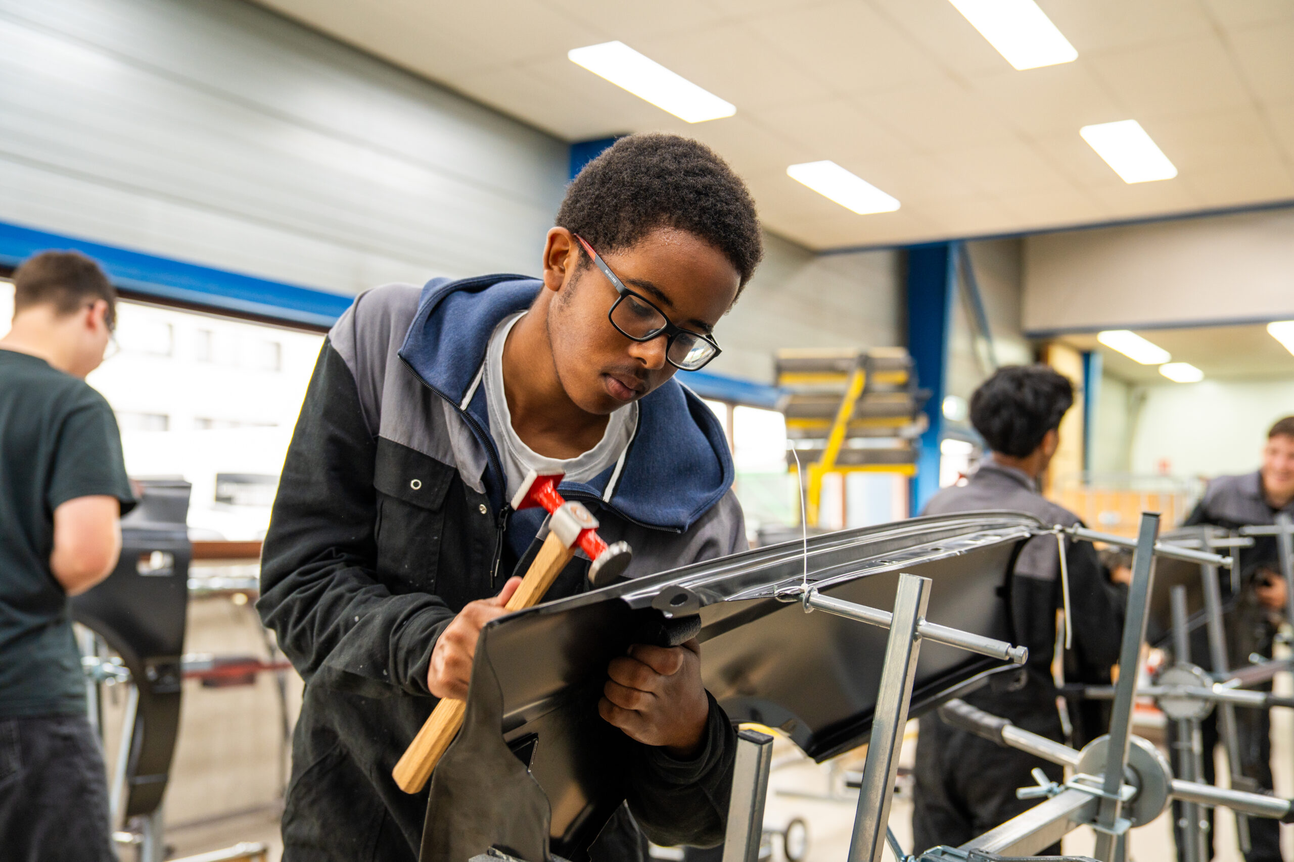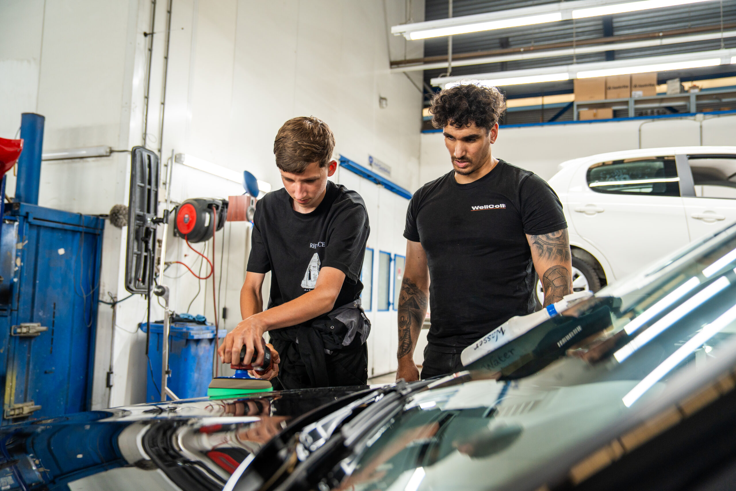 ’s Middags krijgen de leerlingen een rondleiding door het bedrijf en maken ze kennis met de verschillende onderdelen van het vak onder leiding van enthousiaste WellColl-medewerkers. Ze gaan aan de slag met spuitwerk, proberen zelf doffe plekken te polijsten en leren plamuren en schuren. Leerling Shawn-D (15) wordt er helemaal enthousiast van: “Autospuiten is nog leuker dan ik dacht! De begeleider zegt dat ik talent heb en misschien wel terug kan komen voor een bbl-plek. Dat lijkt me geweldig!”